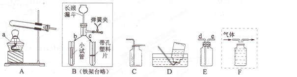 用锌粒与稀盐酸反应制取H2,应选 (填字母), ;