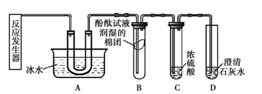 实验一选用上述实验装置________进行过氧化钙与水反应的实验,收集一试管气体,将带火星的木条伸入试管中,木条复燃;取反应后的溶液置于试管中,充分振荡后再滴入 ___________(填写一种试剂的名称)试液,发现溶液变成红色,说明猜想①是正确的,反应的化学方程式是 _______ 。