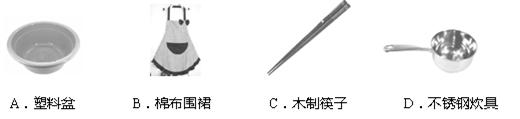 | A.紫砂锅 | B.陶瓷碗 | C.不锈钢水瓢 | D.塑料盆 |