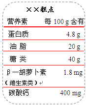 ⑵“××糕点”主要营养成分如右表所示。请根据该表回答。