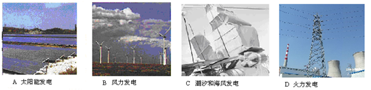 | A.太阳能 | B.风能发电 | C.水能发电 | D.火力发电 |