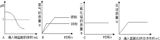 B.相同质量的锌粉和镁粉与等质量相同溶质质量分数的稀盐酸(足量)反应