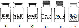 化学兴趣小组同学发现实验台上按如图所示顺序摆放着6瓶不同的无色溶液(如图所示:A、B、C、D、E、F代表对应的溶液).其中E溶液的试剂瓶标签破损.为此,他们做了如下探究: