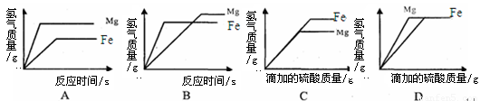 等质量的镁和铁分别放置在两只烧杯中,向其中分别逐滴加入溶质质量分数相等的稀硫酸至过量,下图正确的是