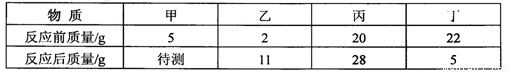 在一个密闭容器中,有甲、乙、丙、丁四种物质在一定条件下充分反应后,测得反应前后各物质的质量如下表