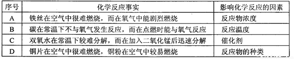 比较、推理是化学学习常用的方法,以下是根据一些反应事实推导出的影响化学反应的因素,其中推理不合理的是