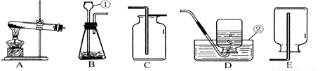 ⑴写出图中有标号仪器的名称:①               ,②