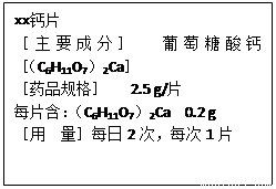 ⑵人体缺少钙元素会影响健康,因此每日需摄人足够的钙。目前市场上的补钙药剂很多,以下是某品牌补钙药剂说明书的部分信息。请仔细阅读后进行计算: