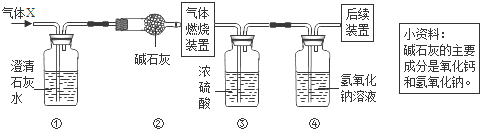 某无色气体X可能含有氢气、一氧化碳、二氧化碳和甲烷四种气体中的一种或两种,为确认其组成,某同学取一定量该气体按如图所示装置进行实验(假设每步都充分反应或吸收),结果装置①中无明显变化,装置③增重1.8g,装置④增重2.2g,下列关于气体X成分的分析中,错误的是