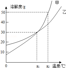 C.分别将a1℃时等质量的甲、乙饱和溶液降温,均有晶体析出