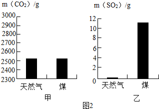 充分燃烧1kg天然气和煤所产生的CO2和SO2的质量如图2所示.为此,改用天然气作燃料的优点是 .天然气(主要成分CH4)燃烧的化学方程式为 .