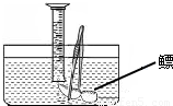 刘仪对妈妈杀鱼时从鱼肚内取出的鳔(如图)产生了兴趣.他拟定“探究鳔内气体体积和成分”作为研究性学习的课题.刘仪通过查阅有关资料获知:这种鱼鳔内氧气约占四分之一,其余主要为二氧化碳和氮气.探究分两步进行.
