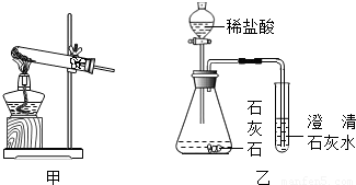 (3)某化学兴趣小组用乙装置制取并检验二氧化碳.实验过程中,可观察到试管里产生 色沉淀,反应的化学方程式是 .产生沉淀后继续通入二氧化碳,过一段时间后,发现沉淀溶解变成澄清溶液.为了确定沉淀溶解成澄清溶液的原因,小组的同学进行了相关探究.