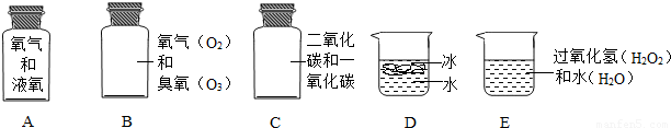 下列分别盛有不同物质的容器中,所盛物质属于单质的是______,化合物的是______,纯净物的是______,混合物的是______,氧化物的是______.(均填容器下的代号)