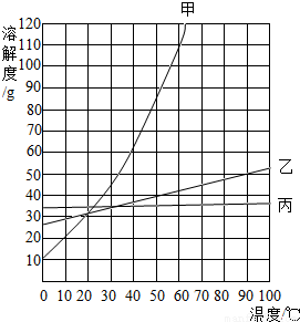 (3)60℃时,将甲、乙、丙的固体各40g分别加入100g水中充分溶解后,能形成饱和溶液的是 .