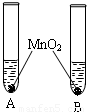 | ①将等体积的两种无色液体分别加入A、B两个试管中. ②分别向A、B两试管中同时加入等质量(少量)的二氧化锰,观察现象. | A试管中无明显现象 B试管中有气泡产生 | A试管中的无色液体是: ______; B试管中的无色液体是: ______; |