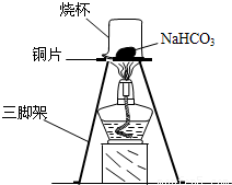 [进行实验]为验证碳酸氢钠受热时会分解,兴趣小组的同学取一定质量的 碳酸氢钠到铜片上加热,如图示.
