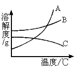 A、B、C三种固体物质的溶解度曲线.当它们的溶液接近饱和时,若分别采用升高温度、蒸发溶剂、增加溶质的方法,均可使之变为饱和溶液的是[