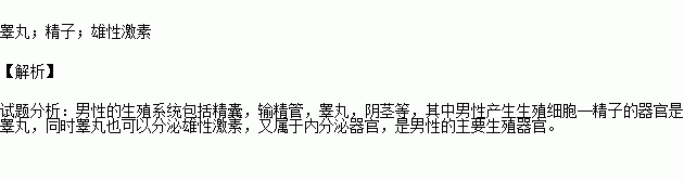 男性的主要生殖器官是____ ,其功能是产生______ ,并且分泌_____ 。