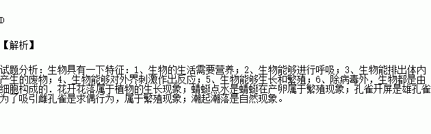 A.花开花落 B.北雁南飞 C.孔雀“开屏” D.潮涨潮落