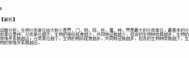 A.分类单位越大,所包含的种类越少