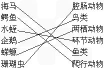 请将下列有关动物的名称、所属类群及主要特征用短线连接