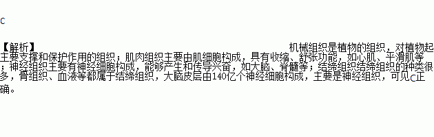 A. 机械组织 B. 肌肉组织 C. 神经组织 D. 结缔组织