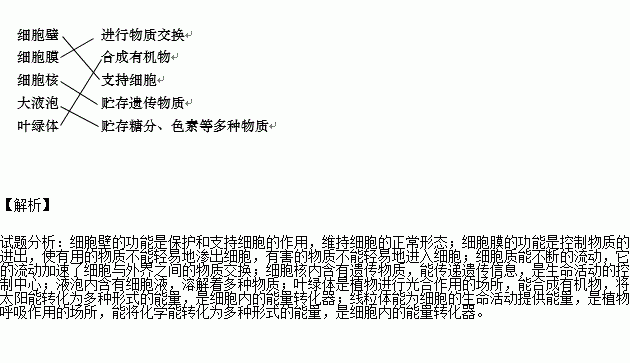 用连接线把细胞的结构与有关功能连接起来