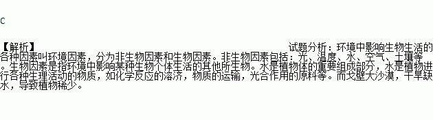 我国戈壁大沙漠中植物稀少,起决定作用的主要非生物因素是( )