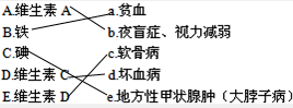 请你将下列几种物质与其缺乏时的症状匹配起来