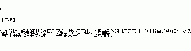 消灭蝗虫时,把它的头部置于水中却不能使它窒息,原因是( )。