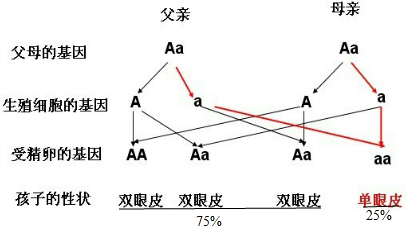 (3)如果控制双眼皮的基因是A,控制单眼皮的基因是a,女儿眼睑的基因组成为