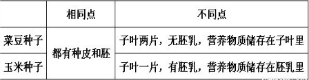 【答案】分析:解答该题一要知道菜豆种子和玉米种子的结构,二要通过比较知道两类种子的异同;可借助图示解答该题.