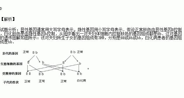 白化病的致病基因是隐性的,用b表示,正常肤色的基因是显性的,用B表示,有一个白化病人,他的基因型应该是( )