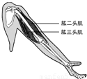 观察右图,当你伸肘时,肱二头肌、肱三头肌如何运动( )