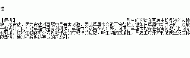 眼虫、变形虫等单细胞生物能通过神经系统对外界刺激作出反应。