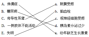 E.失明 e.幼年缺乏生长激素.