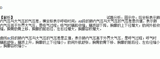 下图是某人在一次平静呼吸中肺内气压的变化曲线,试分析曲线BC段的变化中,胸廓的前后径和左右径的变化( )