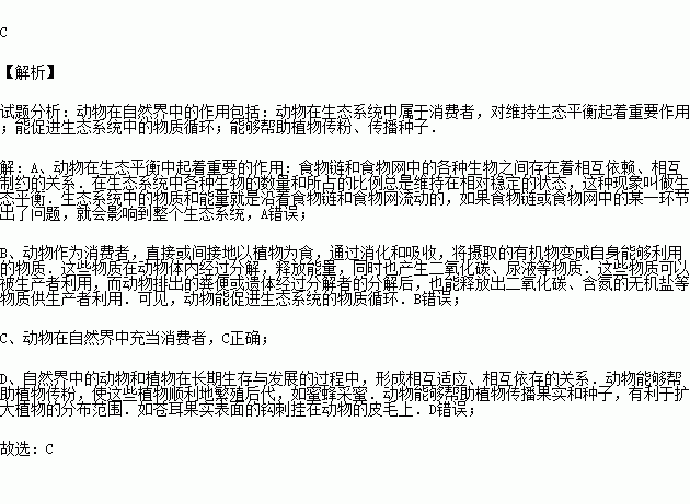 (2015秋•岱岳区期末)下列哪一项不是动物在自然界中的作用( )