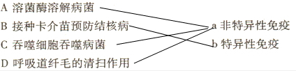 B、接种卡介苗预防结核病,属于第三道防线,其特点是只针对某一特定的病原体或异物起作用,因此属于特异性免疫.