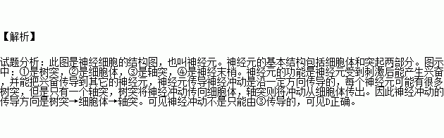 C.神经冲动只能由③传导 D.神经元的功能是感受刺激、产生兴奋和传导兴奋