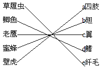 动物的运动依靠一定的结构。将下列生物与其右侧的运动结构进行合理的搭配,将对应的字母填入相应的括号中。