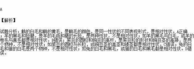 A.鹅的白毛和鹅的黄毛 B.羊的黑毛和短腿
