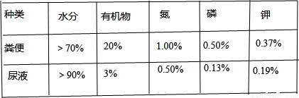 解答:解:人粪尿中的各成分如下表