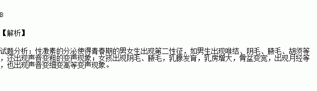 A.骨盆宽大 B.喉结突出 C.乳房隆起 D.声调变高