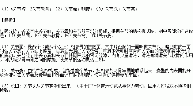 (1)关节能灵活运动是因为[ ]内有少量滑液和[ ]表面光滑,从而而减少了骨与骨之间的磨擦。