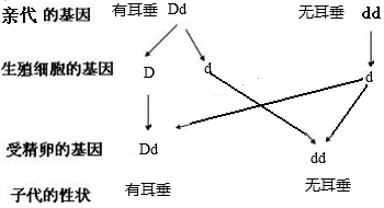 (3)已知有耳垂和无耳垂这一对性状,决定有耳垂的基因(D)是显性基因,决定无耳垂的基因(d)是隐形基因,因此父母的基因组成应该是Dd、dd,子女为因组成可能是Dd或dd.遗传图解如图所示: