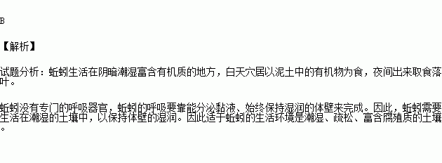 某校生物兴趣小组的同学要饲养一部分蚯蚓做实验,他们应该为蚯蚓提供什么样的生活条件( )
