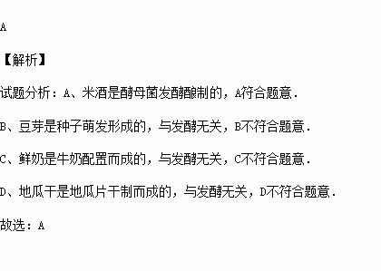 A.米酒 B.豆芽 C.鲜奶 D.地瓜干