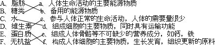 把食物中的各种成分(A~F)与它对人体的作用连接起来.
